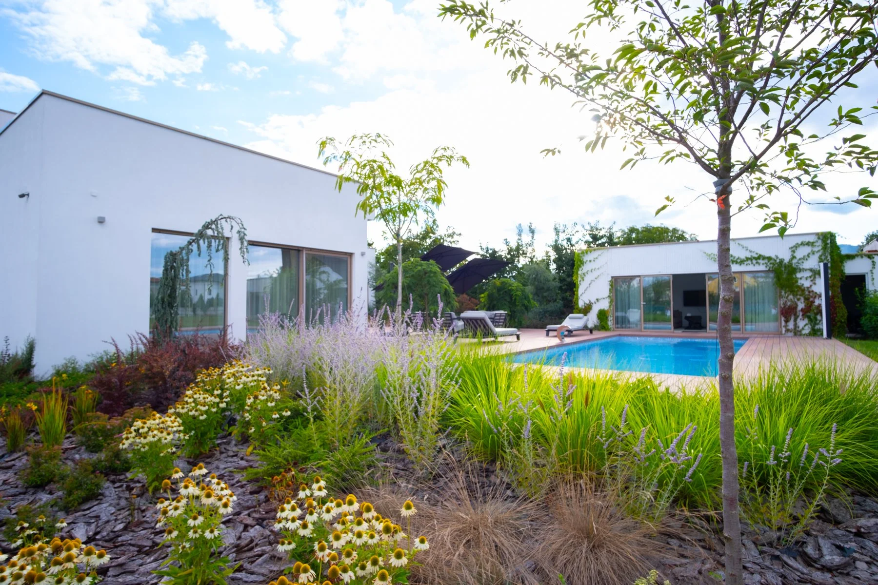 Realizăm grădini particulare, terase, iazuri, acoperișuri verzi, grădini verticale și parcuri publice.